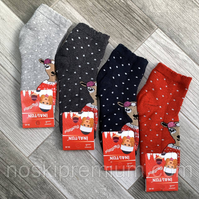 Новорічні шкарпетки жіночі махрові бавовна Inaltun, Туреччина, розмір 36-40, асорті, 08465