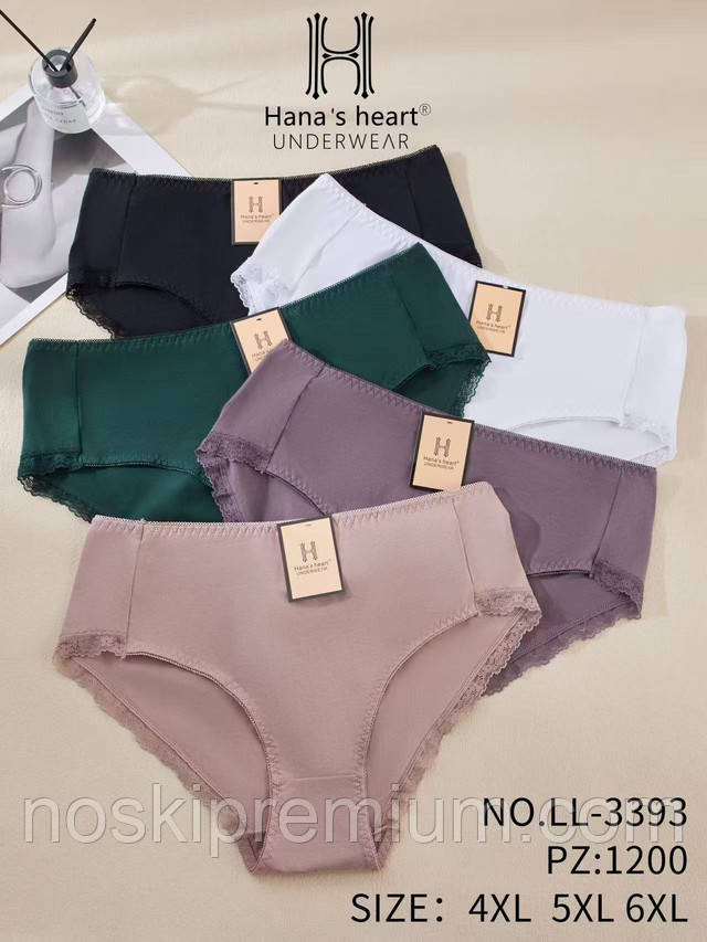 Трусики жіночі бавовна Hana's heart, розміри 4XL, 5XL, 6XL, асорті, 3393