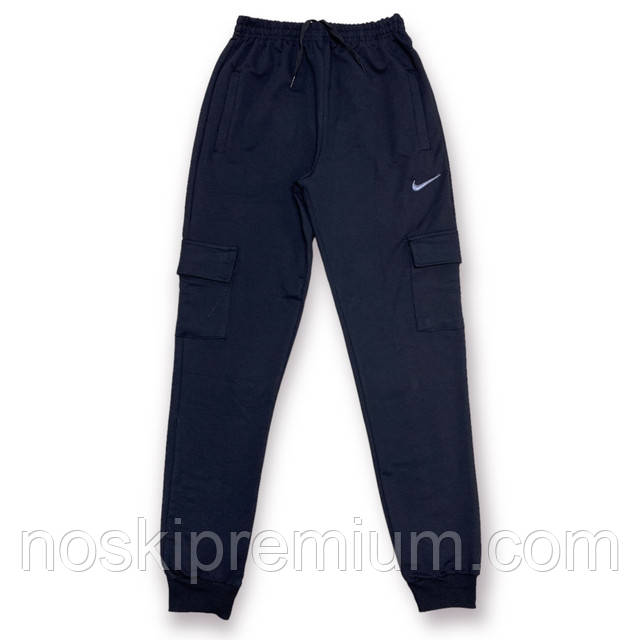 Штани спортивні чоловічі з манжетом двонитка пеньє Nike, 4 кишені, розміри 46-54, темно-сині, 4002