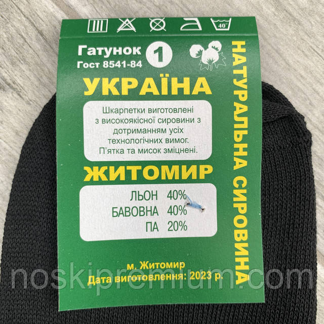 Шкарпетки чоловічі класичні демісезонні гладкі з бавовни без додавання лайкри торгової марки Житомир Premium, виробництво Україна.