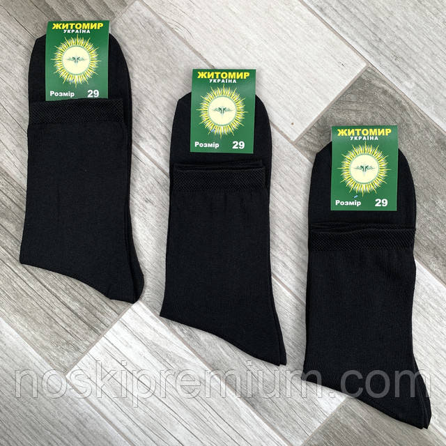 Шкарпетки чоловічі демісезонні гладкі бавовна Житомир Premium, 31 розмір, чорні, 08608