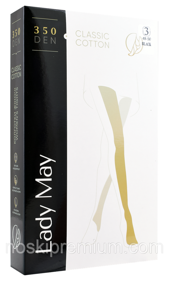 Колготки жіночі класичні чорного кольору Cotton 350 Den торгової марки Lady May (Місюренко).
