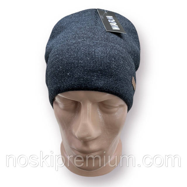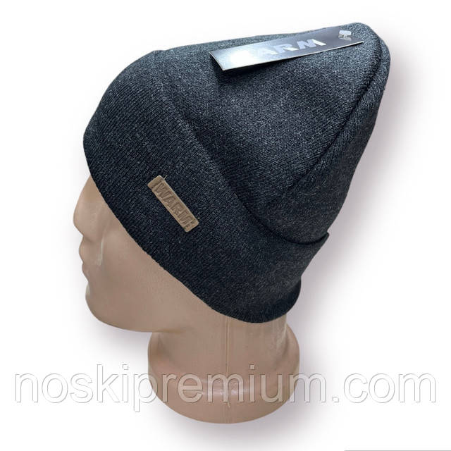 Шапка чоловіча "Відворот лейба" вовняна на флісі із закотом Warm, сіра, 020110