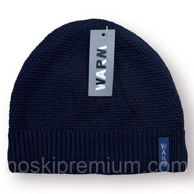 Шапка чоловіча "Перловка" вовняна на флісі без закота Warm, синя, 020226