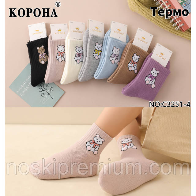 Шкарпетки дитячі термомахрові бавовна Корона, розмір 31-36, асорті, 3251-4